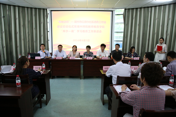 为进一步提高“两学一做”学习教育的实效性,推进湖州市“结对共学共做 携手共建共进”活动,教师教育学院党委根据省委省政府《关于全面加强中小学德育工作的若干意见》文件精神,围绕立德树人根本任务,开展“青柚空间——红领巾社区德育工作站”建设。6月1日下午,项目启动仪式在余家漾社区举行。市文明办、团市委、市教育局基教处、吴兴区文明办、吴兴区团区委、飞英街道和我校文明办、团委、教师教育学院相关负责人,教师教育学院学工办、分团委、学生党支部负责老师,第一批建设单位的党组织书记、大学生志愿者代表、社区家长代表、少先队员代表参加此次活动。