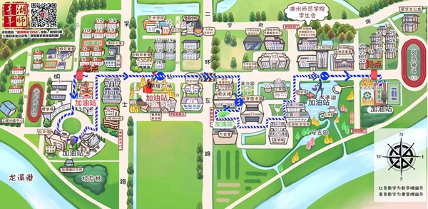 在校园十大景观处设置加油站,提供接力跑途中的加油补给(矿泉水、小面包等)、医疗救助,同时在加油站设有社团表演,进一步增添校园活力氛围,师生们可在加油站补给能量,得到加油助威。