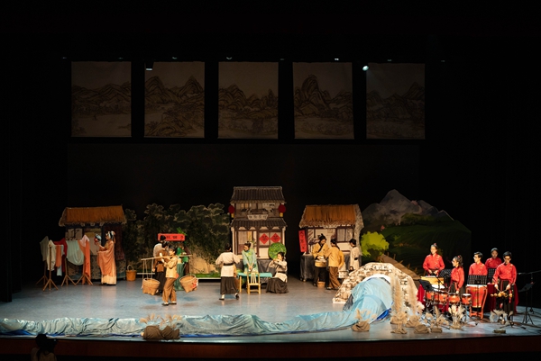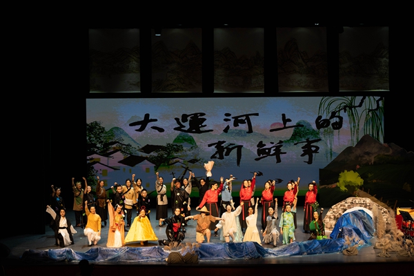 《大运河上的新鲜事》将打击乐融入到剧情当中,配合精彩绝伦的歌舞表演、美轮美奂的灯光转换和演员们的生动演绎,给现场观众带来一场视听盛宴。该剧主要讲述了在京杭大运河湖州段含山脚下勤劳的村民们——含山爷爷、蚕小宝、丝绸姐姐、桑树哥哥等与运河里的垃圾怪抗争,并通过智慧和团结共同守卫绿色家园的故事。“桑基鱼塘”“湖笔文化”“‘两山’理念”经过儿童剧中活灵活现的精心演绎,更加引起观众们的共鸣。这是湖州文化和儿童剧表现形式的一次深度融合和跨界探索,兼具趣味性和教育性,充分激发了孩子们保护环境、团结一致的意识和决心。