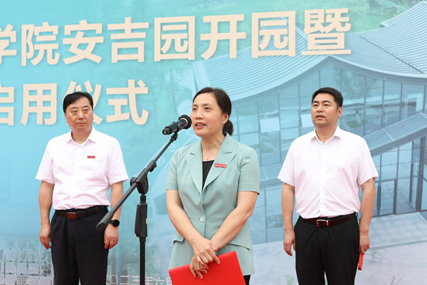 宁云代表安吉县委县政府对安吉园的落成和校友中心的正式启用表示热烈祝贺。他表示,安吉园改造提升和校友中心建设项目的圆满完成,不仅是学校的发展建设成果,也是湖州市教育事业、文化事业的一次壮大和提升,更是校地合作新的篇章。他希望,校地双方扎实推进“在湖州看见美丽中国”实干争先主题实践,共同推动更广泛、更深入的合作;进一步加强政校企多方联动,不断深化政产学研合作,形成高层级战略互动和宽领域全面合作;充分整合资源,依托“两山”理念研究院等载体,推动校地合作结出更多硕果,更好地对外展现安吉元素和文化特色,传播“绿水青山就是金山银山”的发展理念。