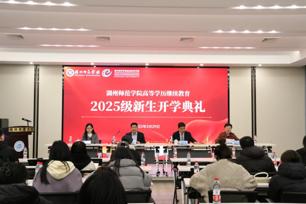 3月29日下午,我校高等学历继续教育2025级新生开学典礼在西校区建树大厦报告厅举行。副校长舒志定出席,继续教育学院领导班子成员,社会合作与发展联络办公室相关负责人,校外教学点老师、班主任和全体2025级新生参加。本次开学典礼采用现场典礼仪式和“云典礼仪式”相结合的方式进行,近2000名新生和教学点老师同步在线观看。